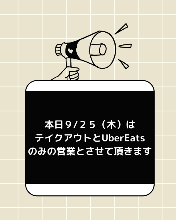 テイクアウトとUberEatsはしていますので、